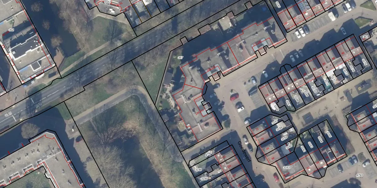 Het perceel waarop Goedewerf 145 staat heeft een oppervlakte van 2417 m². Dit is een zeer groot perceel. De perceeloppervlakte wordt geregistreerd door het Kadaster. Gedetailleerde informatie over de maten van dit perceel kunt u vinden in het rapport Kadastrale kaart met maatvoering van Goedewerf 145.