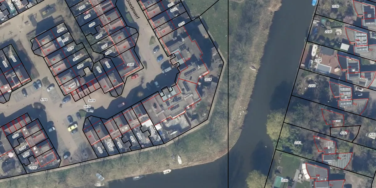 Het perceel waarop Goedewerf 37 staat heeft een oppervlakte van 1582 m². Dit is een zeer groot perceel. De perceeloppervlakte wordt geregistreerd door het Kadaster. Gedetailleerde informatie over de maten van dit perceel kunt u vinden in het rapport Kadastrale kaart met maatvoering van Goedewerf 37.