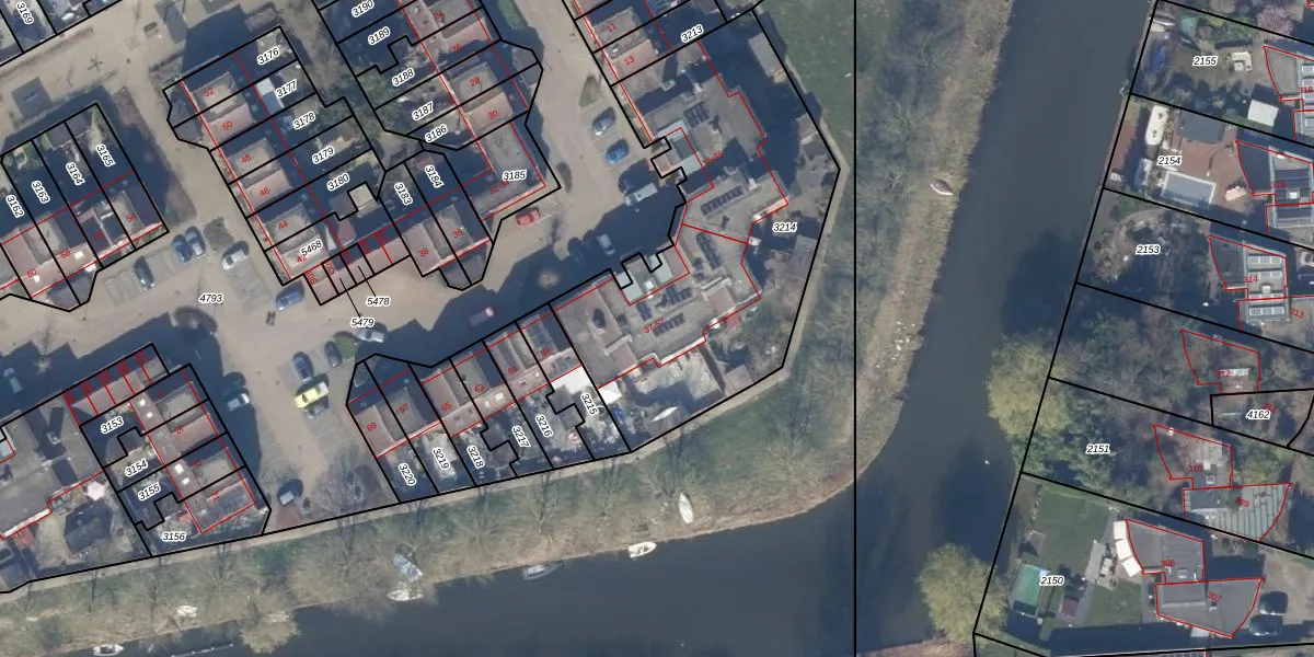 Het perceel waarop Goedewerf 55 staat heeft een oppervlakte van 1582 m². Dit is een zeer groot perceel. De perceeloppervlakte wordt geregistreerd door het Kadaster. Gedetailleerde informatie over de maten van dit perceel kunt u vinden in het rapport Kadastrale kaart met maatvoering van Goedewerf 55.