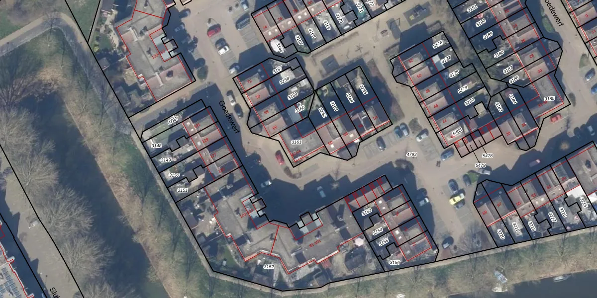 Het perceel waarop Goedewerf 64 staat heeft een oppervlakte van 163 m². Dit is een middelgroot perceel. De perceeloppervlakte wordt geregistreerd door het Kadaster. Gedetailleerde informatie over de maten van dit perceel kunt u vinden in het rapport Kadastrale kaart met maatvoering van Goedewerf 64.