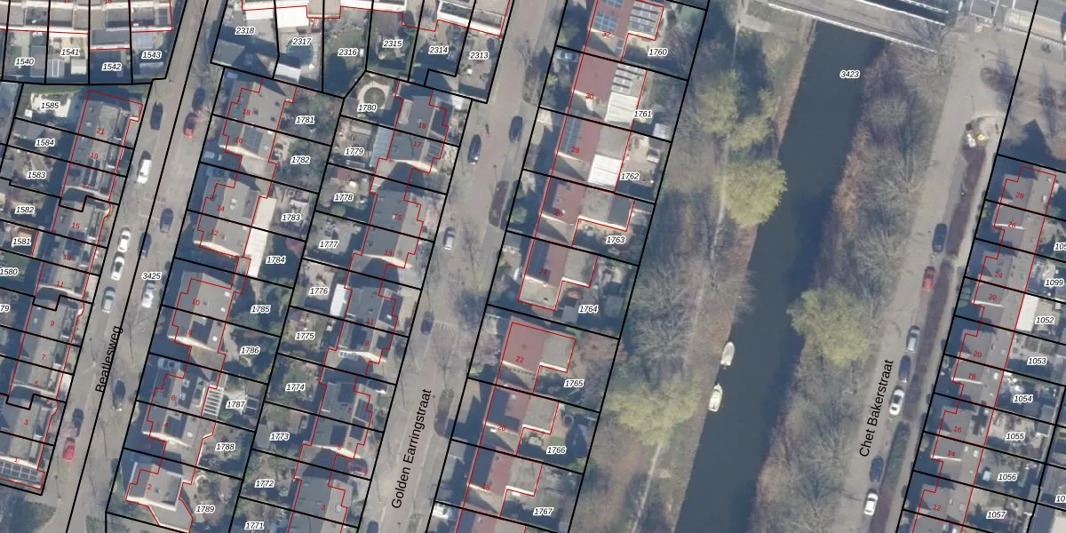 Het perceel waarop Golden Earringstraat 24 staat heeft een oppervlakte van 368 m². Dit is een groot perceel. De perceeloppervlakte wordt geregistreerd door het Kadaster. Gedetailleerde informatie over de maten van dit perceel kunt u vinden in het rapport Kadastrale kaart met maatvoering van Golden Earringstraat 24.