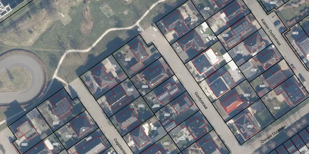 Gebruik de zoekbalk of klik op een perceel voor informatie over de adressen binnen dit perceel.
