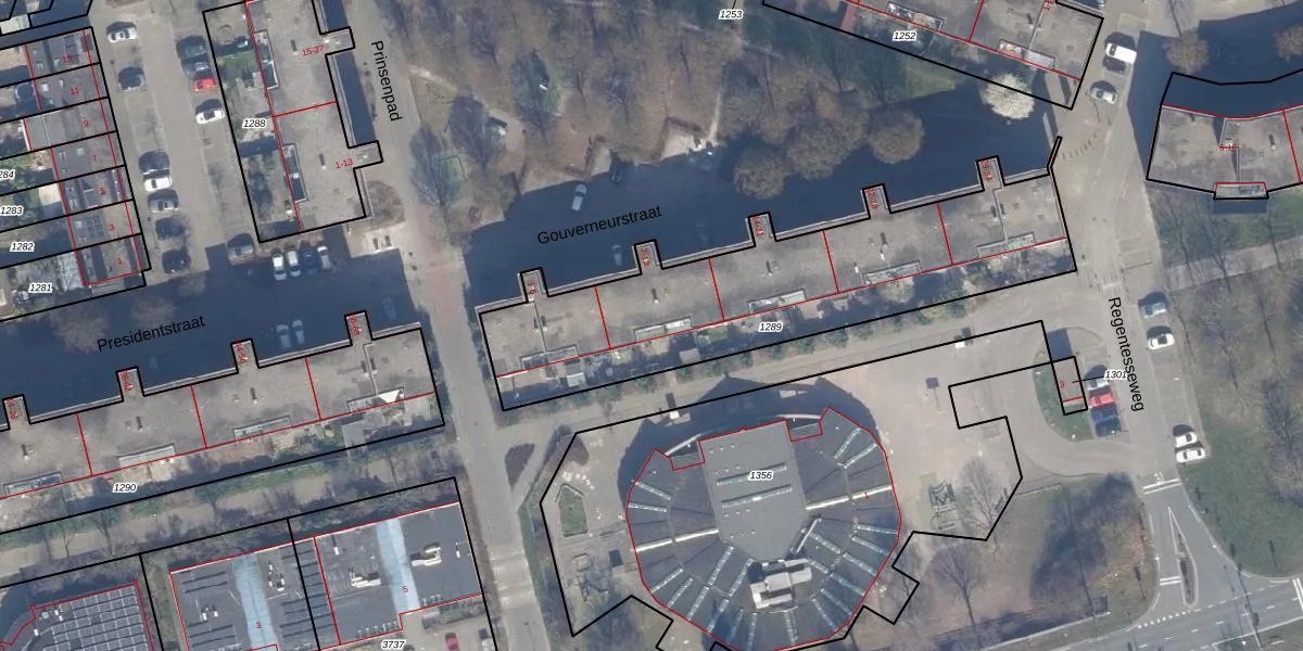 Het perceel waarop Gouverneurstraat 12 staat heeft een oppervlakte van 1465 m². Dit is een zeer groot perceel. De perceeloppervlakte wordt geregistreerd door het Kadaster. Gedetailleerde informatie over de maten van dit perceel kunt u vinden in het rapport Kadastrale kaart met maatvoering van Gouverneurstraat 12.