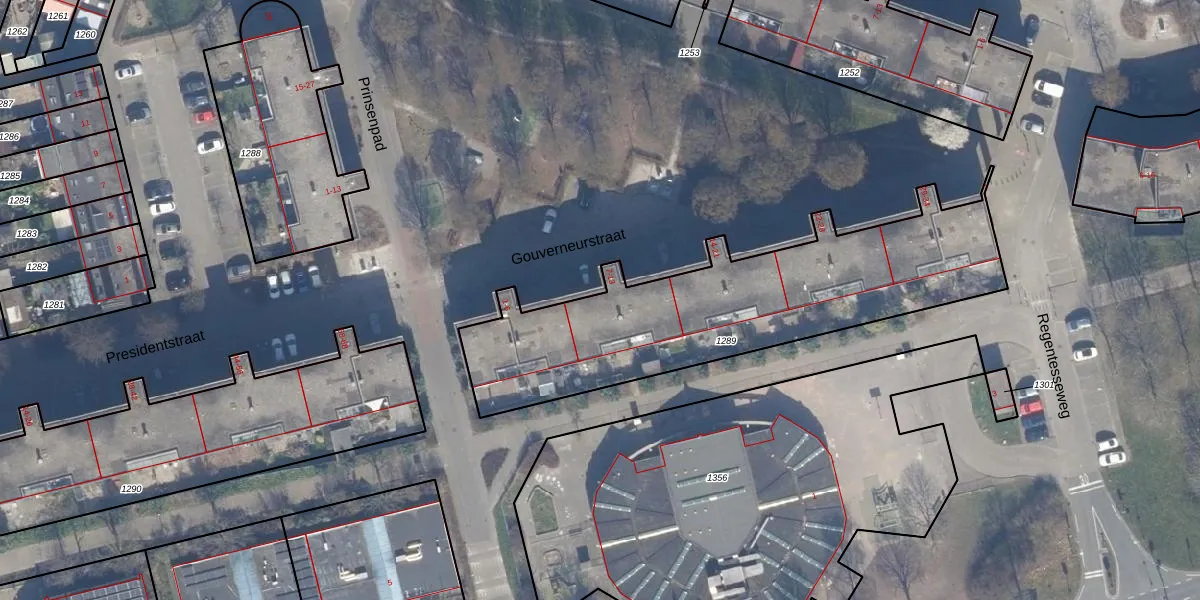 Het perceel waarop Gouverneurstraat 7 staat heeft een oppervlakte van 1465 m². Dit is een zeer groot perceel. De perceeloppervlakte wordt geregistreerd door het Kadaster. Gedetailleerde informatie over de maten van dit perceel kunt u vinden in het rapport Kadastrale kaart met maatvoering van Gouverneurstraat 7.