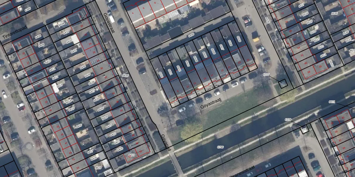 Goyastraat 9 is gelegen op kadastraal perceel AMR04P6501. Deze kadastrale aanduiding is uniek en wordt gebruikt door het Kadaster om eigendomsrechten en andere zakelijke rechten vast te leggen. Het perceel maakt onderdeel uit van de kadastrale gemeente Almere.