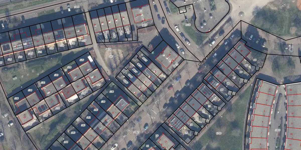 Grace Kellystraat 25 is gelegen op kadastraal perceel AMR04U5876. Deze kadastrale aanduiding is uniek en wordt gebruikt door het Kadaster om eigendomsrechten en andere zakelijke rechten vast te leggen. Het perceel maakt onderdeel uit van de kadastrale gemeente Almere.
