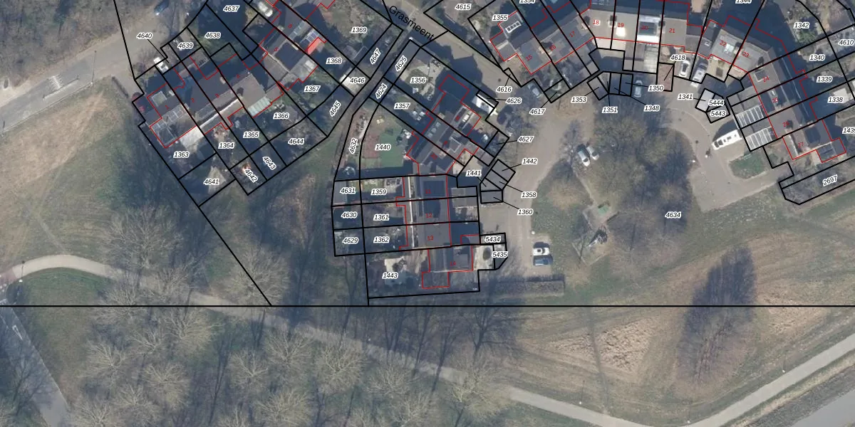 Het perceel waarop Grasmeent 12 staat heeft een oppervlakte van 155 m². Dit is een middelgroot perceel. De perceeloppervlakte wordt geregistreerd door het Kadaster. Gedetailleerde informatie over de maten van dit perceel kunt u vinden in het rapport Kadastrale kaart met maatvoering van Grasmeent 12.