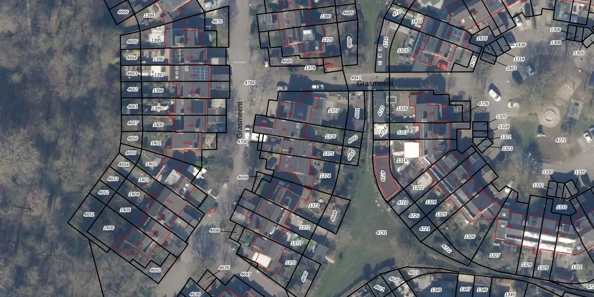Gebruik de zoekbalk of klik op een perceel voor informatie over de adressen binnen dit perceel.