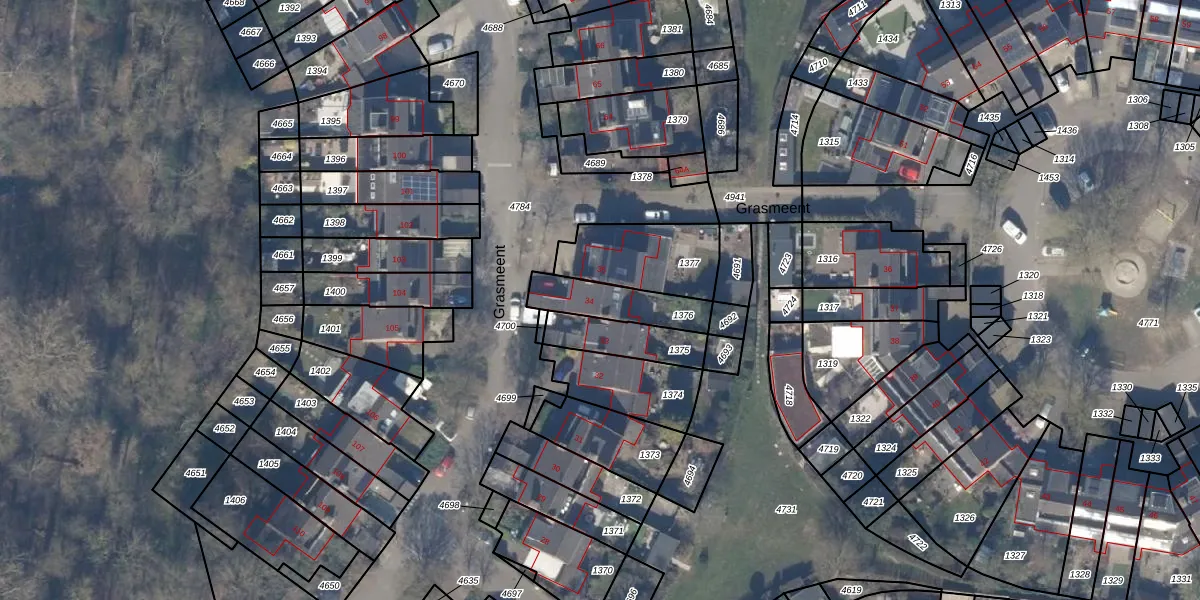 Gebruik de zoekbalk of klik op een perceel voor informatie over de adressen binnen dit perceel.