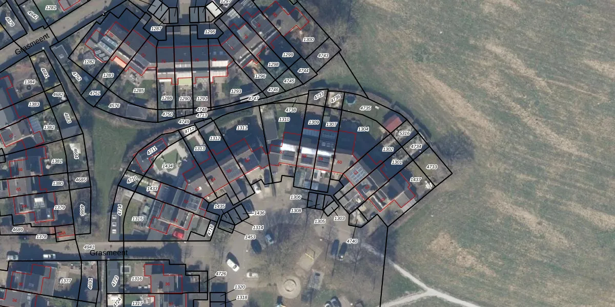 Grasmeent 58 is gelegen op kadastraal perceel AMR04H1309. Deze kadastrale aanduiding is uniek en wordt gebruikt door het Kadaster om eigendomsrechten en andere zakelijke rechten vast te leggen. Het perceel maakt onderdeel uit van de kadastrale gemeente Almere.