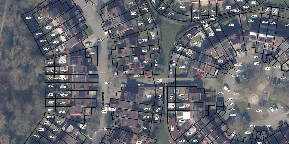 Gebruik de zoekbalk of klik op een perceel voor informatie over de adressen binnen dit perceel.