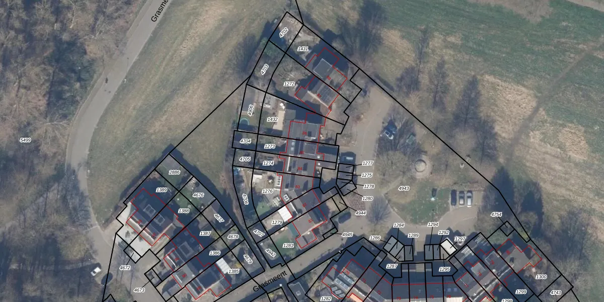 Gebruik de zoekbalk of klik op een perceel voor informatie over de adressen binnen dit perceel.