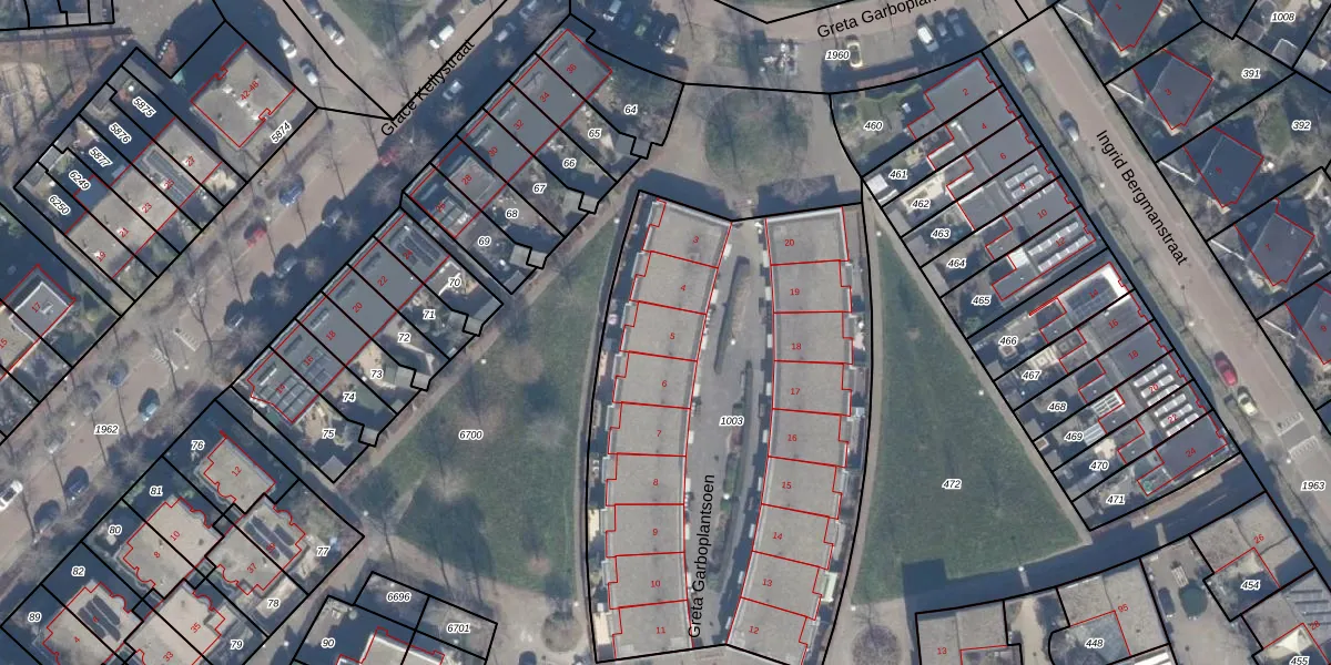 Greta Garboplantsoen 5 is gelegen op kadastraal perceel AMR04U1003. Deze kadastrale aanduiding is uniek en wordt gebruikt door het Kadaster om eigendomsrechten en andere zakelijke rechten vast te leggen. Het perceel maakt onderdeel uit van de kadastrale gemeente Almere.