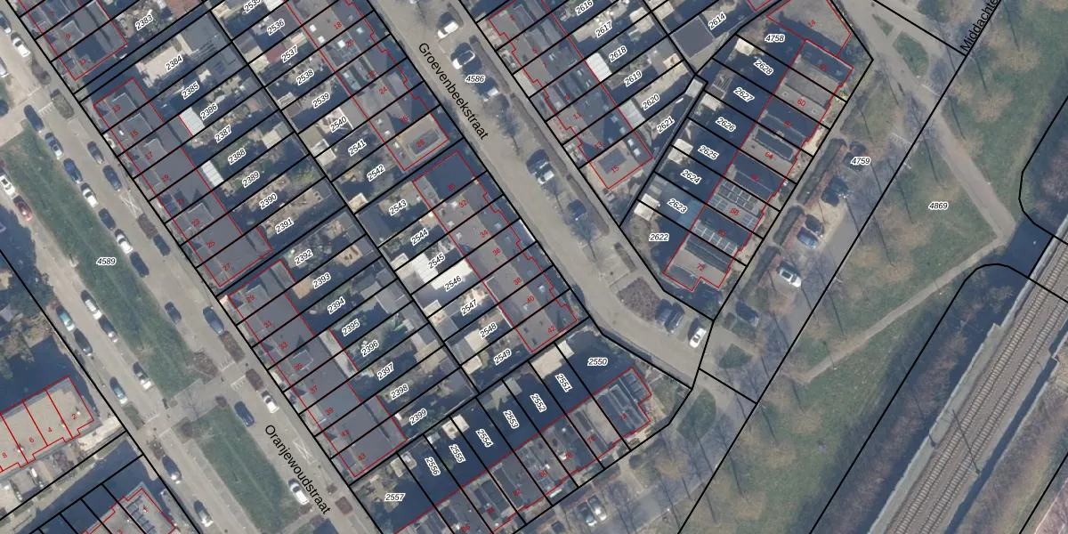 Gebruik de zoekbalk of klik op een perceel voor informatie over de adressen binnen dit perceel.