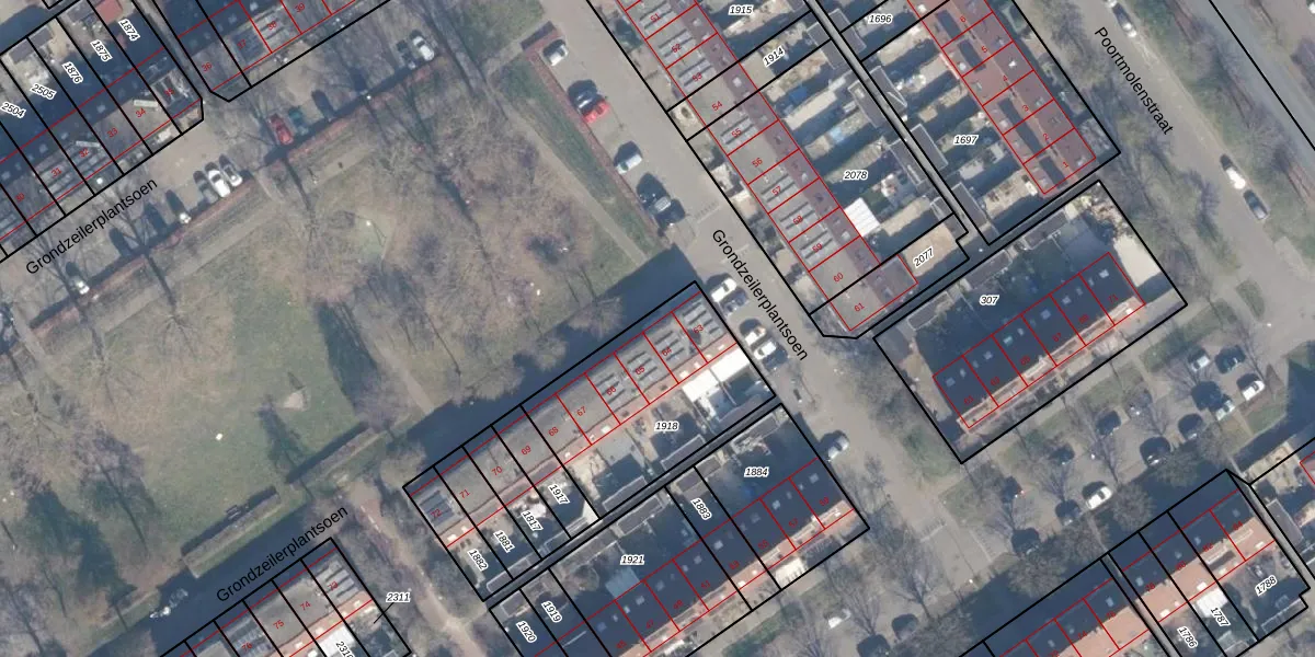 Het perceel waarop Grondzeilerplantsoen 64 staat heeft een oppervlakte van 693 m². Dit is een groot perceel. De perceeloppervlakte wordt geregistreerd door het Kadaster. Gedetailleerde informatie over de maten van dit perceel kunt u vinden in het rapport Kadastrale kaart met maatvoering van Grondzeilerplantsoen 64.