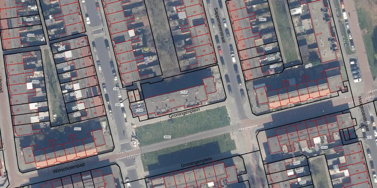 Het perceel waarop Groningenplein 6 staat heeft een oppervlakte van 811 m². Dit is een groot perceel. De perceeloppervlakte wordt geregistreerd door het Kadaster. Gedetailleerde informatie over de maten van dit perceel kunt u vinden in het rapport Kadastrale kaart met maatvoering van Groningenplein 6.