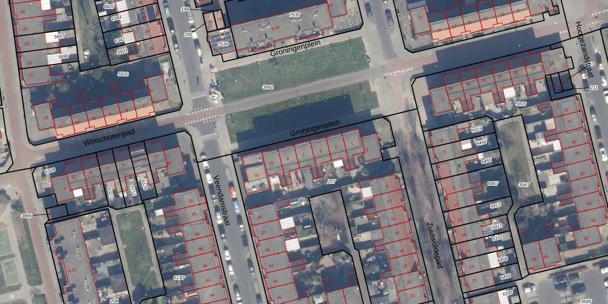 Het perceel waarop Groningenplein 7 staat heeft een oppervlakte van 3001 m². Dit is een zeer groot perceel. De perceeloppervlakte wordt geregistreerd door het Kadaster. Gedetailleerde informatie over de maten van dit perceel kunt u vinden in het rapport Kadastrale kaart met maatvoering van Groningenplein 7.