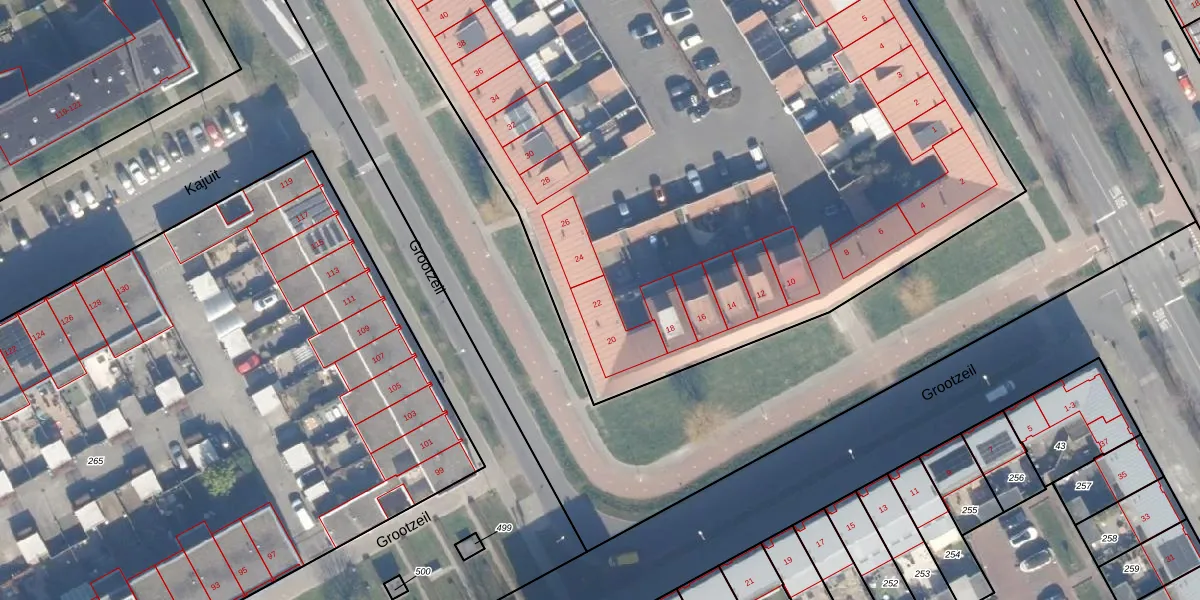 Het perceel waarop Grootzeil 22 staat heeft een oppervlakte van 8931 m². Dit is een zeer groot perceel. De perceeloppervlakte wordt geregistreerd door het Kadaster. Gedetailleerde informatie over de maten van dit perceel kunt u vinden in het rapport Kadastrale kaart met maatvoering van Grootzeil 22.