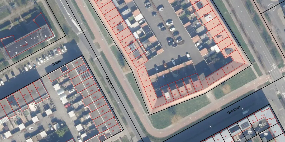 Grootzeil 26 is gelegen op kadastraal perceel AMR04E191. Deze kadastrale aanduiding is uniek en wordt gebruikt door het Kadaster om eigendomsrechten en andere zakelijke rechten vast te leggen. Het perceel maakt onderdeel uit van de kadastrale gemeente Almere.