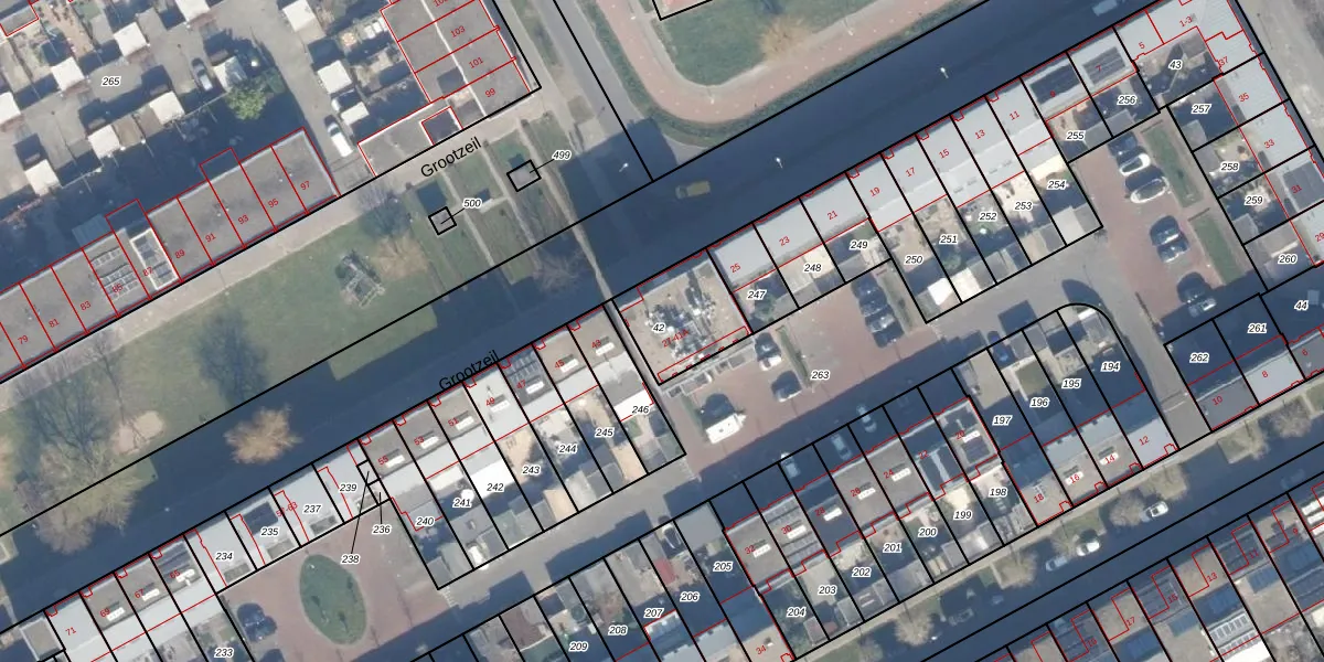 Het perceel waarop Grootzeil 33 staat heeft een oppervlakte van 239 m². Dit is een middelgroot perceel. De perceeloppervlakte wordt geregistreerd door het Kadaster. Gedetailleerde informatie over de maten van dit perceel kunt u vinden in het rapport Kadastrale kaart met maatvoering van Grootzeil 33.