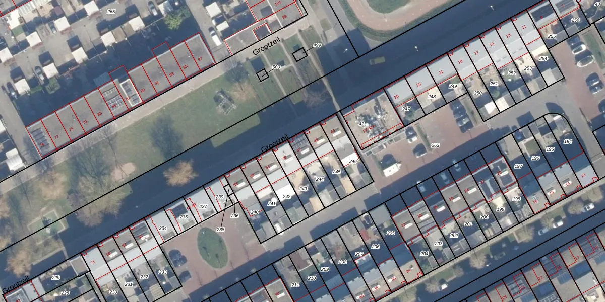 Het perceel waarop Grootzeil 47 staat heeft een oppervlakte van 155 m². Dit is een middelgroot perceel. De perceeloppervlakte wordt geregistreerd door het Kadaster. Gedetailleerde informatie over de maten van dit perceel kunt u vinden in het rapport Kadastrale kaart met maatvoering van Grootzeil 47.