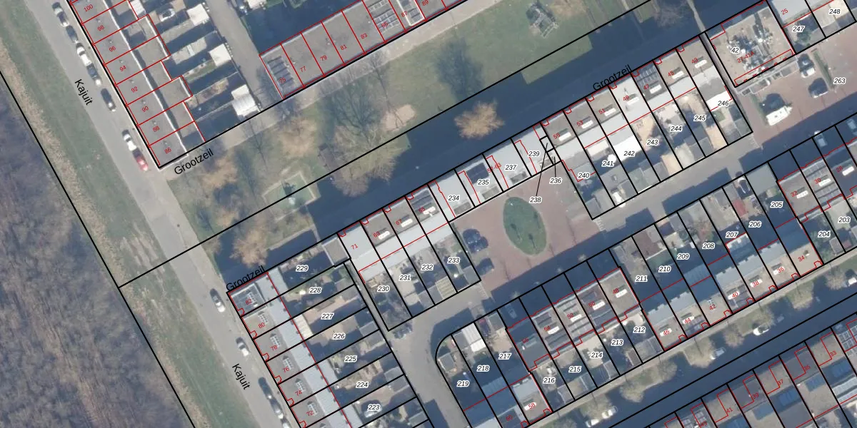 Het perceel waarop Grootzeil 65 staat heeft een oppervlakte van 157 m². Dit is een middelgroot perceel. De perceeloppervlakte wordt geregistreerd door het Kadaster. Gedetailleerde informatie over de maten van dit perceel kunt u vinden in het rapport Kadastrale kaart met maatvoering van Grootzeil 65.
