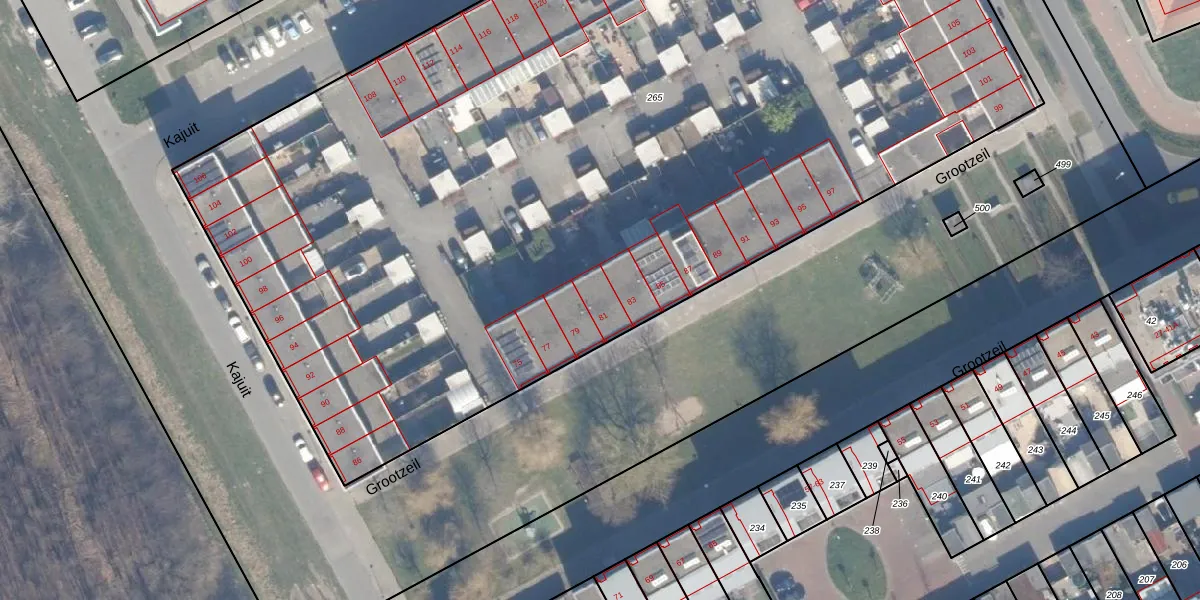 Het perceel waarop Grootzeil 81 staat heeft een oppervlakte van 7978 m². Dit is een zeer groot perceel. De perceeloppervlakte wordt geregistreerd door het Kadaster. Gedetailleerde informatie over de maten van dit perceel kunt u vinden in het rapport Kadastrale kaart met maatvoering van Grootzeil 81.