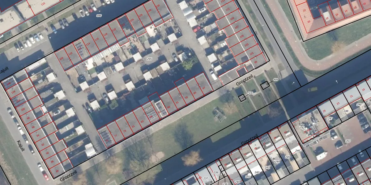 Het perceel waarop Grootzeil 93 staat heeft een oppervlakte van 7978 m². Dit is een zeer groot perceel. De perceeloppervlakte wordt geregistreerd door het Kadaster. Gedetailleerde informatie over de maten van dit perceel kunt u vinden in het rapport Kadastrale kaart met maatvoering van Grootzeil 93.