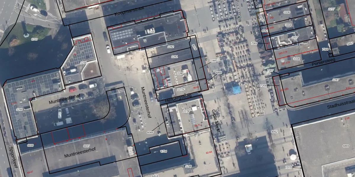 Het perceel waarop Grote Markt 38 staat heeft een oppervlakte van 157 m². Dit is een middelgroot perceel. De perceeloppervlakte wordt geregistreerd door het Kadaster. Gedetailleerde informatie over de maten van dit perceel kunt u vinden in het rapport Kadastrale kaart met maatvoering van Grote Markt 38.