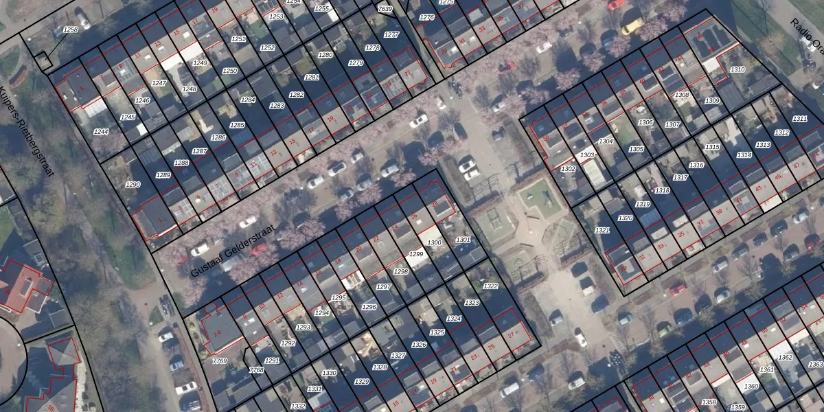 Gustaaf Gelderstraat 26 is gelegen op kadastraal perceel AMR04P1300. Deze kadastrale aanduiding is uniek en wordt gebruikt door het Kadaster om eigendomsrechten en andere zakelijke rechten vast te leggen. Het perceel maakt onderdeel uit van de kadastrale gemeente Almere.