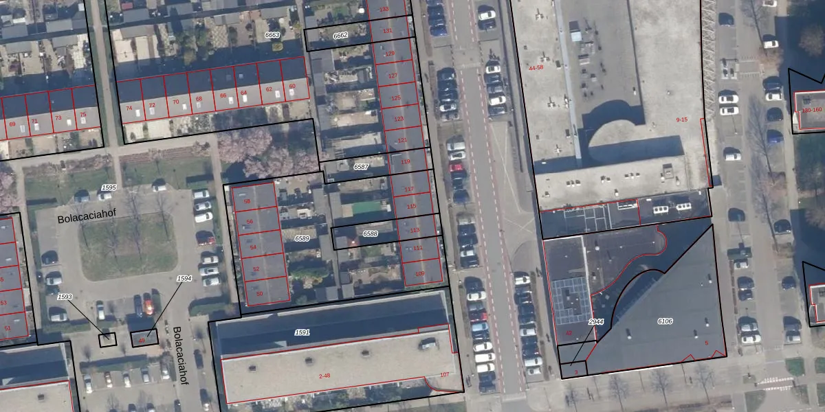 Het perceel waarop het adres ligt is AMR04-U-6589. De afkorting 'AMR04' staat voor kadastrale gemeente Almere. Het perceel is kleiner dan gemiddeld in Almere. Het perceel is 1396 m² groot, terwijl het gemiddelde ligt op 3328,15 m². Het grootste perceel in de kadastrale gemeente is 32,12 km². Het kleinste perceel heeft een oppervlakte van 0 m². Op het perceel zijn 9 adressen aanwezig. In de Basisregistratie Kadaster (BRK) werden de grenzen van het perceel geregistreerd op 09-12-2009.