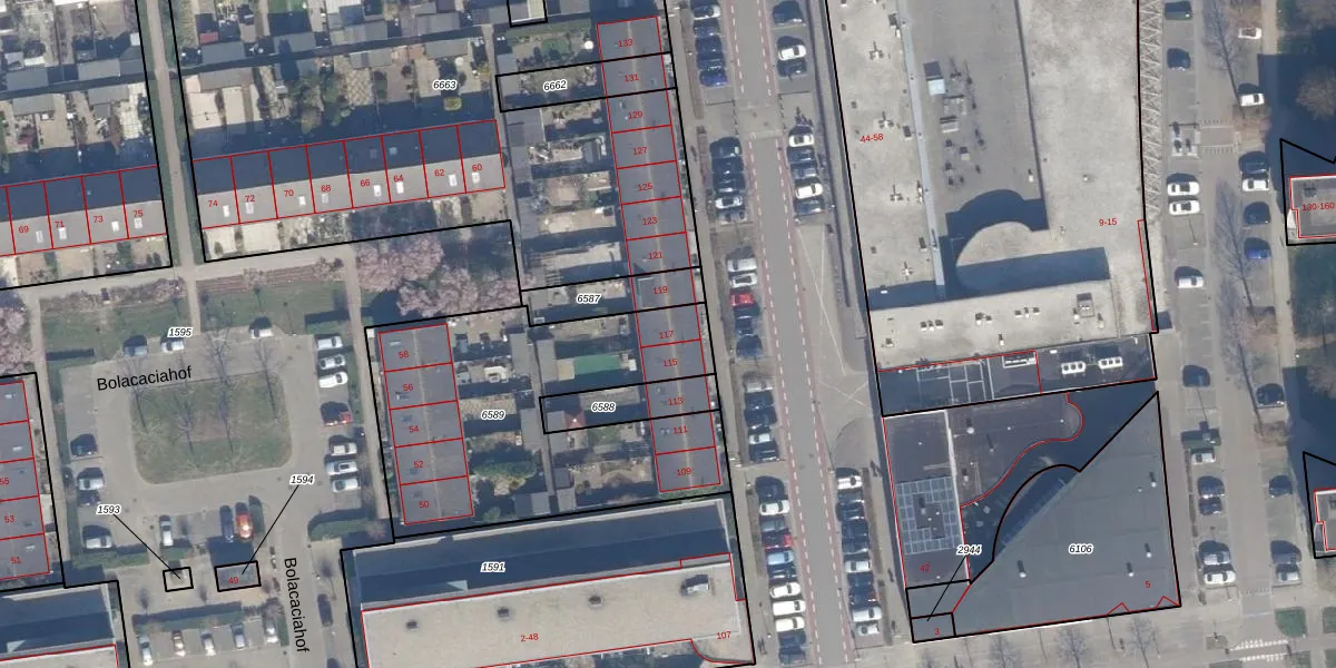Het perceel waarop het adres ligt is AMR04-U-6589. De afkorting 'AMR04' staat voor kadastrale gemeente Almere. Het perceel is kleiner dan gemiddeld in Almere. Het perceel is 1396 m² groot, terwijl het gemiddelde ligt op 3328,15 m². Het grootste perceel in de kadastrale gemeente is 32,12 km². Het kleinste perceel heeft een oppervlakte van 0 m². Op het perceel zijn 9 adressen aanwezig. De huidige grenzen van het perceel zijn digitaal in de Basisregistratie Kadaster (BRK) geregistreerd op 09-12-2009.
