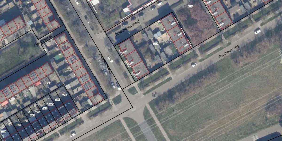 Het perceel waarop het adres ligt is AMR04-U-2315. De afkorting 'AMR04' staat voor kadastrale gemeente Almere. De gemiddelde perceelgrootte in Almere is 3329,36 m². Dit perceel is kleiner: de perceeloppervlakte bedraagt 1406 m². De grootste perceeloppervlakte in de kadastrale gemeente is 32,12 km². De kleinste oppervlakte bedraagt 0 m². Op het perceel zijn 12 adressen aanwezig. De huidige grenzen van het perceel zijn digitaal in de Basisregistratie Kadaster (BRK) geregistreerd op 25-11-1998.