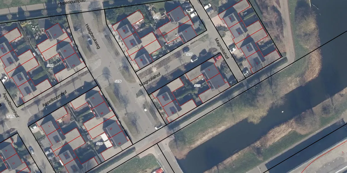 Het perceel waarop Haagbeukweg 24 staat heeft een oppervlakte van 967 m². Dit is een groot perceel. De perceeloppervlakte wordt geregistreerd door het Kadaster. Gedetailleerde informatie over de maten van dit perceel kunt u vinden in het rapport Kadastrale kaart met maatvoering van Haagbeukweg 24.