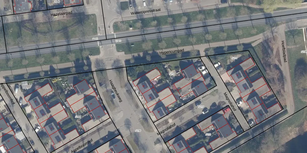 Het perceel waarop Haagbeukweg 30 staat heeft een oppervlakte van 1508 m². Dit is een zeer groot perceel. De perceeloppervlakte wordt geregistreerd door het Kadaster. Gedetailleerde informatie over de maten van dit perceel kunt u vinden in het rapport Kadastrale kaart met maatvoering van Haagbeukweg 30.