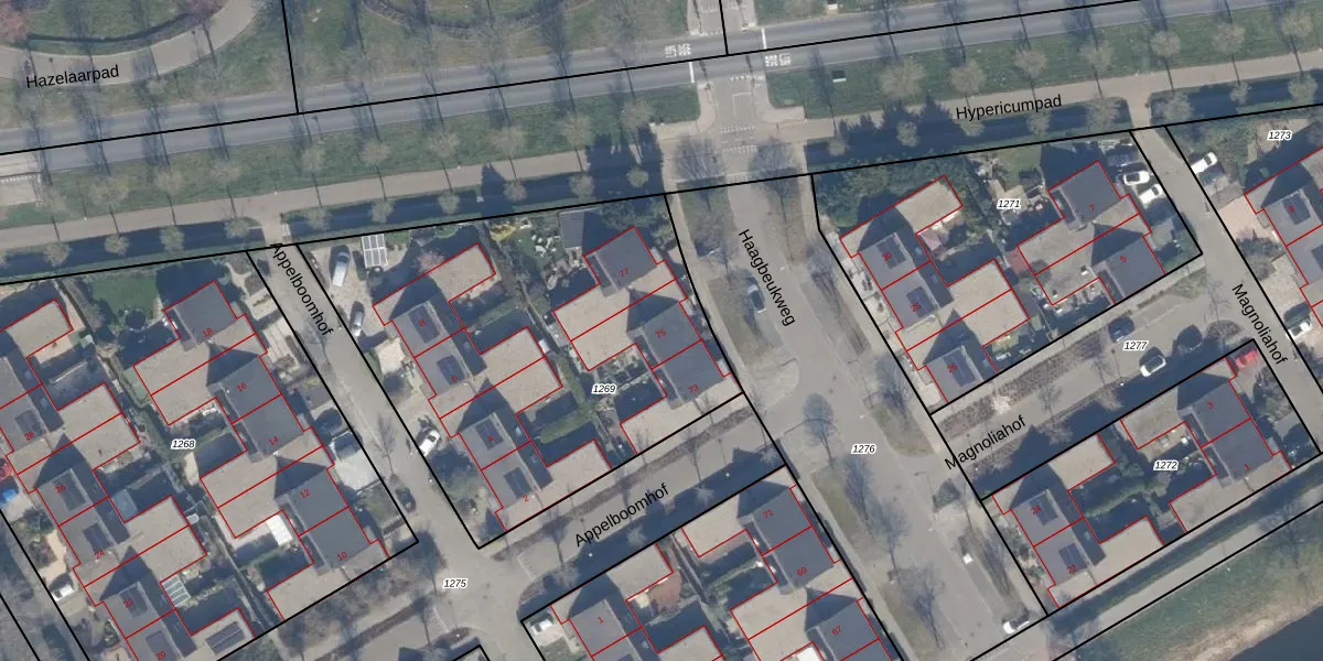 Het perceel waarop Haagbeukweg 75 staat heeft een oppervlakte van 2111 m². Dit is een zeer groot perceel. De perceeloppervlakte wordt geregistreerd door het Kadaster. Gedetailleerde informatie over de maten van dit perceel kunt u vinden in het rapport Kadastrale kaart met maatvoering van Haagbeukweg 75.
