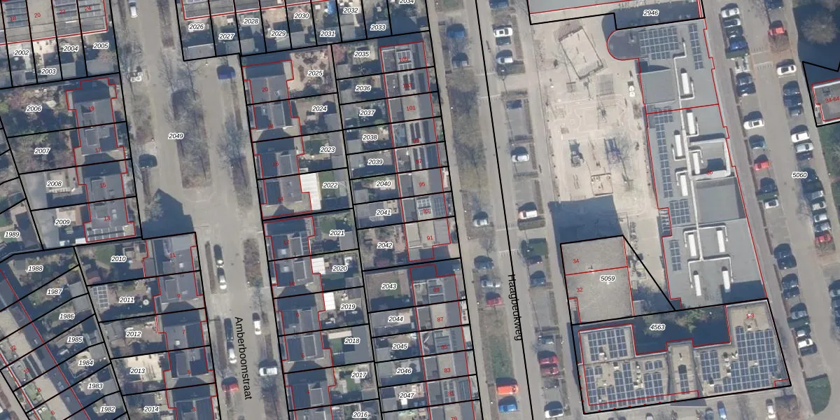 Gebruik de zoekbalk of klik op een perceel voor informatie over de adressen binnen dit perceel.