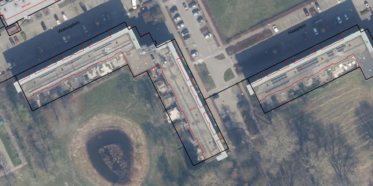 Het perceel waarop Haaiplein 42 staat heeft een oppervlakte van 2924 m². Dit is een zeer groot perceel. De perceeloppervlakte wordt geregistreerd door het Kadaster. Gedetailleerde informatie over de maten van dit perceel kunt u vinden in het rapport Kadastrale kaart met maatvoering van Haaiplein 42.