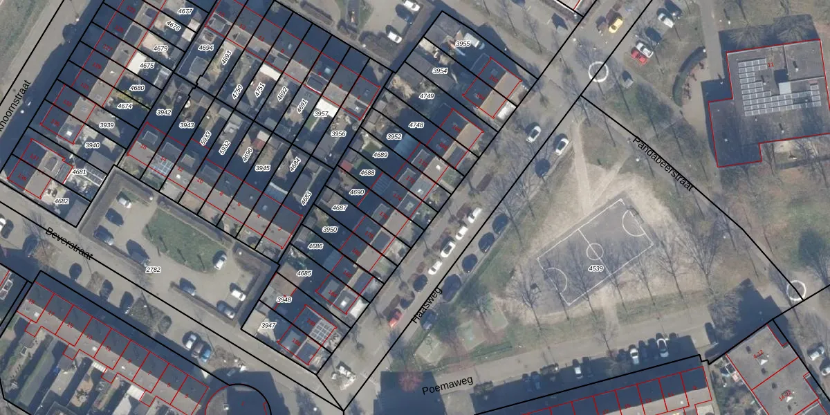 Gebruik de zoekbalk of klik op een perceel voor informatie over de adressen binnen dit perceel.