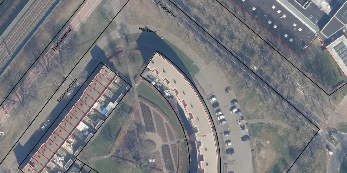 Het perceel waarop Haasweg 22 staat heeft een oppervlakte van 1862 m². Dit is een zeer groot perceel. De perceeloppervlakte wordt geregistreerd door het Kadaster. Gedetailleerde informatie over de maten van dit perceel kunt u vinden in het rapport Kadastrale kaart met maatvoering van Haasweg 22.