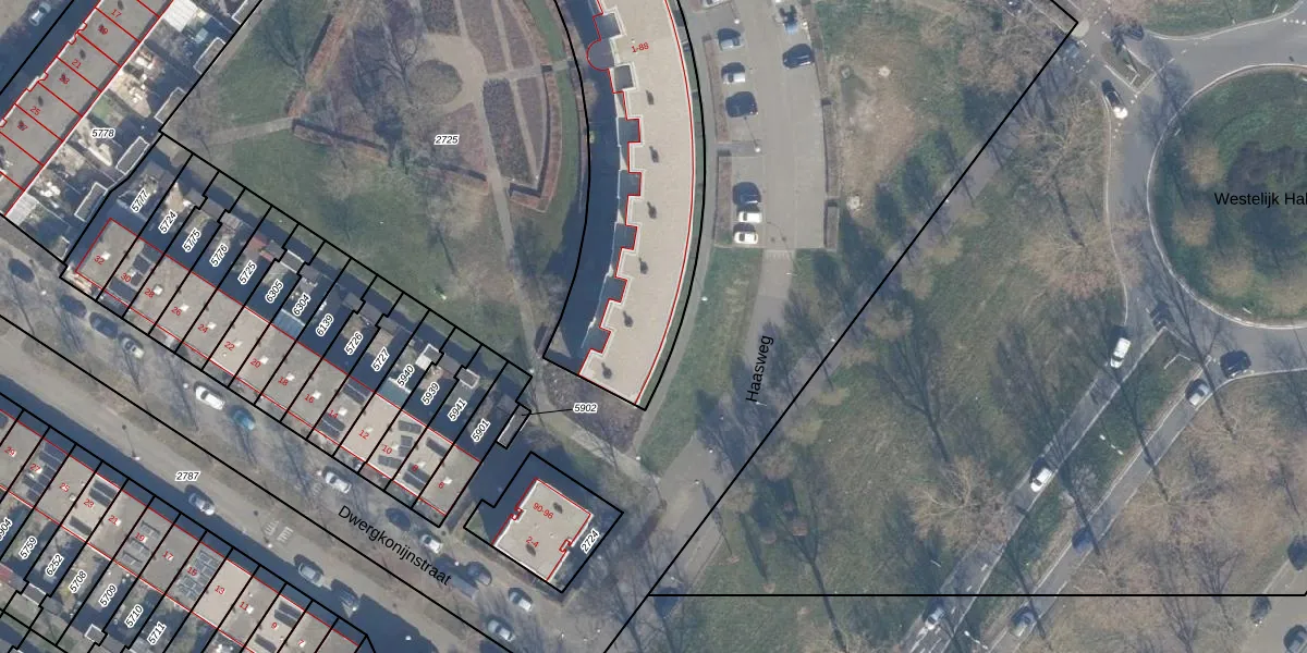 Het perceel waarop Haasweg 86 staat heeft een oppervlakte van 1862 m². Dit is een zeer groot perceel. De perceeloppervlakte wordt geregistreerd door het Kadaster. Gedetailleerde informatie over de maten van dit perceel kunt u vinden in het rapport Kadastrale kaart met maatvoering van Haasweg 86.