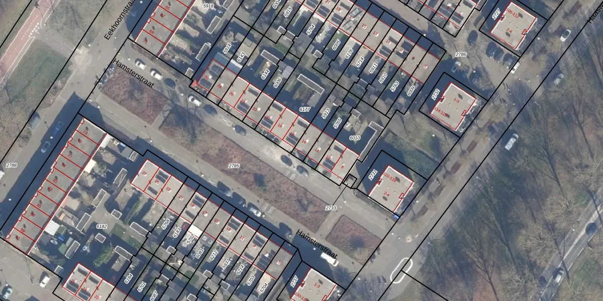 Het perceel waarop Hamsterstraat 14 staat heeft een oppervlakte van 135 m². Dit is een middelgroot perceel. De perceeloppervlakte wordt geregistreerd door het Kadaster. Gedetailleerde informatie over de maten van dit perceel kunt u vinden in het rapport Kadastrale kaart met maatvoering van Hamsterstraat 14.