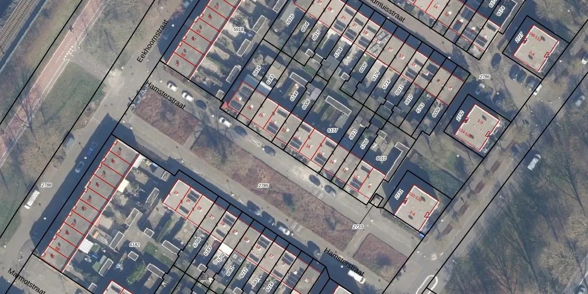 Het perceel waarop Hamsterstraat 20 staat heeft een oppervlakte van 542 m². Dit is een groot perceel. De perceeloppervlakte wordt geregistreerd door het Kadaster. Gedetailleerde informatie over de maten van dit perceel kunt u vinden in het rapport Kadastrale kaart met maatvoering van Hamsterstraat 20.