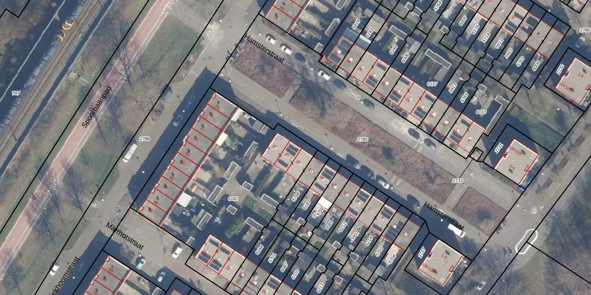 Het perceel waarop Hamsterstraat 25 staat heeft een oppervlakte van 2188 m². Dit is een zeer groot perceel. De perceeloppervlakte wordt geregistreerd door het Kadaster. Gedetailleerde informatie over de maten van dit perceel kunt u vinden in het rapport Kadastrale kaart met maatvoering van Hamsterstraat 25.
