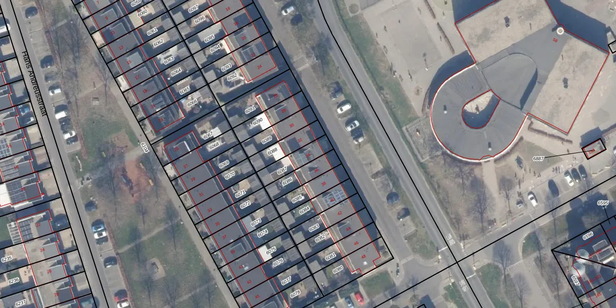 Het adres ligt op het perceel AMR04-Q-6087, dat zich in de kadastrale gemeente Almere bevindt. De gemiddelde perceelgrootte in Almere is 3327,75 m². Dit perceel is kleiner: de perceeloppervlakte bedraagt 139 m². De grootste perceeloppervlakte in de kadastrale gemeente is 32,12 km². De kleinste oppervlakte bedraagt 0 m². Dit is het enige adres dat aanwezig is op het perceel. De huidige grenzen van het perceel zijn digitaal in de Basisregistratie Kadaster (BRK) geregistreerd op 23-05-2002.