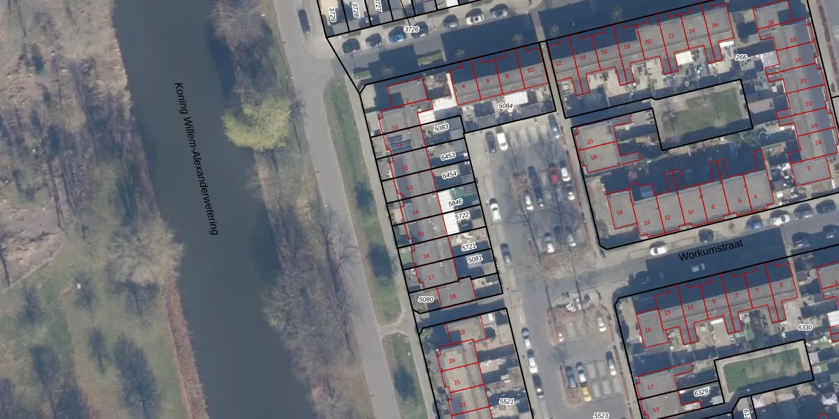 Gebruik de zoekbalk of klik op een perceel voor informatie over de adressen binnen dit perceel.