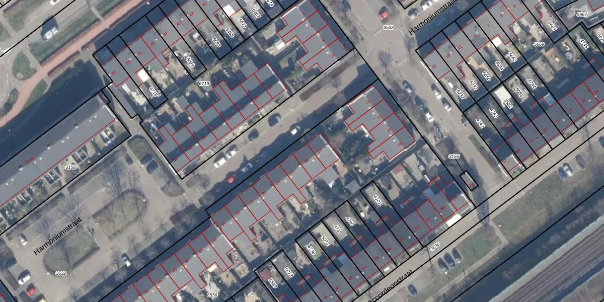 Het perceel waarop Harmoniumstraat 19 staat heeft een oppervlakte van 4357 m². Dit is een zeer groot perceel. De perceeloppervlakte wordt geregistreerd door het Kadaster. Gedetailleerde informatie over de maten van dit perceel kunt u vinden in het rapport Kadastrale kaart met maatvoering van Harmoniumstraat 19.
