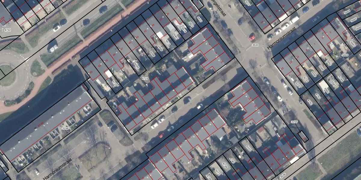 Het perceel waarop Harmoniumstraat 20 staat heeft een oppervlakte van 2333 m². Dit is een zeer groot perceel. De perceeloppervlakte wordt geregistreerd door het Kadaster. Gedetailleerde informatie over de maten van dit perceel kunt u vinden in het rapport Kadastrale kaart met maatvoering van Harmoniumstraat 20.
