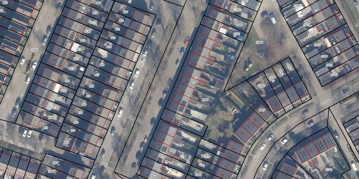 Het perceel waarop Harpstraat 33 staat heeft een oppervlakte van 2568 m². Dit is een zeer groot perceel. De perceeloppervlakte wordt geregistreerd door het Kadaster. Gedetailleerde informatie over de maten van dit perceel kunt u vinden in het rapport Kadastrale kaart met maatvoering van Harpstraat 33.