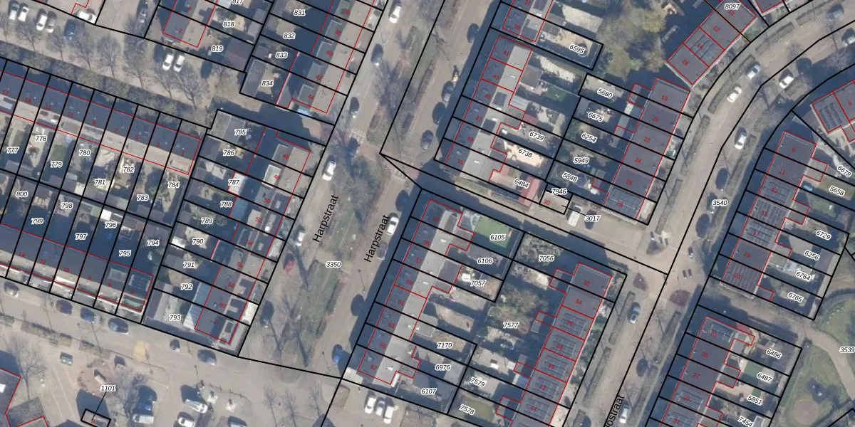 Het perceel waarop Harpstraat 53 staat heeft een oppervlakte van 185 m². Dit is een middelgroot perceel. De perceeloppervlakte wordt geregistreerd door het Kadaster. Gedetailleerde informatie over de maten van dit perceel kunt u vinden in het rapport Kadastrale kaart met maatvoering van Harpstraat 53.